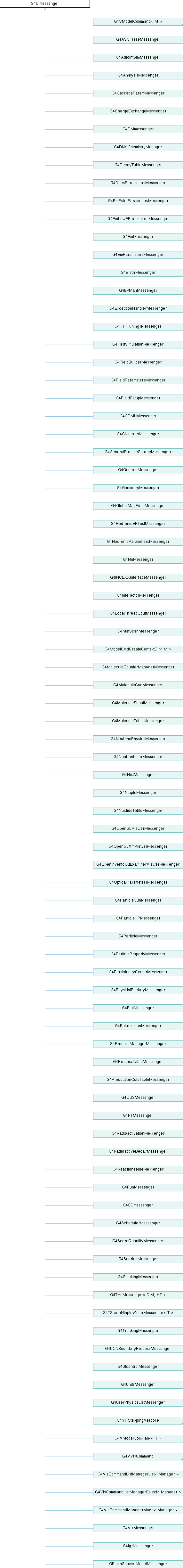 Reimplemented in G4AdjointSimMessenger, G4AnalysisMessenger, G4ASCIITreeMessenger, G4CascadeParamMessenger, G4ChargeExchangeMessenger, G4DecayTableMessenger, G4DeexParametersMessenger, G4DMmessenger, G4DNAChemistryManager, G4EmExtraParametersMessenger, G4EmLowEParametersMessenger, G4EmMessenger, G4EmParametersMessenger, G4ErrorMessenger, G4EvManMessenger, G4ExceptionHandlerMessenger, G4FastSimulationMessenger, G4FieldBuilderMessenger, G4FieldParametersMessenger, G4FieldSetupMessenger, G4FTFTuningsMessenger, G4GDMLMessenger, G4GeneralParticleSourceMessenger, G4GenericMessenger, G4GeometryMessenger, G4GlobalMagFieldMessenger, G4GMocrenMessenger, G4HadronicEPTestMessenger, G4HadronicParametersMessenger, G4HnMessenger, G4INCLXXInterfaceMessenger, G4InteractorMessenger, G4LocalThreadCoutMessenger, G4MatScanMessenger, G4ModelCmdApplyBool< M >, G4ModelCmdApplyColour< M >, G4ModelCmdApplyDouble< M >, G4ModelCmdApplyDoubleAndUnit< M >, G4ModelCmdApplyInteger< M >, G4ModelCmdApplyNull< M >, G4ModelCmdApplyString< M >, G4ModelCmdApplyStringColour< M >, G4MoleculeCounterManagerMessenger, G4MoleculeGunMessenger, G4MoleculeShootMessenger, G4MoleculeTableMessenger, G4NeutrinoPhysicsMessenger, G4NeutronKillerMessenger, G4NistMessenger, G4NtupleMessenger, G4NuclideTableMessenger, G4OpenGLViewerMessenger, G4OpenGLXmViewerMessenger, G4OpenInventorXtExaminerViewerMessenger, G4OpticalParametersMessenger, G4ParticleGunMessenger, G4ParticleHPMessenger, G4ParticleMessenger, G4ParticlePropertyMessenger, G4PersistencyCenterMessenger, G4PhysListFactoryMessenger, G4PlotMessenger, G4PolarizationMessenger, G4ProcessManagerMessenger, G4ProcessTableMessenger, G4ProductionCutsTableMessenger, G4QSSMessenger, G4RadioactivationMessenger, G4RadioactiveDecayMessenger, G4ReactionTableMessenger, G4RTMessenger, G4RunMessenger, G4SchedulerMessenger, G4ScoreQuantityMessenger, G4ScoringMessenger, G4SDmessenger, G4StackingMessenger, G4tgrMessenger, G4THnMessenger< DIM, HT >, G4ToolsSGOffscreenViewer::Messenger, G4ToolsSGSceneHandler::Messenger, G4ToolsSGViewer< SG_SESSION, SG_VIEWER >::Messenger, G4TrackingMessenger, G4TScoreNtupleWriterMessenger< T >, G4UCNBoundaryProcessMessenger, G4UIcontrolMessenger, G4UnitsMessenger, G4UserPhysicsListMessenger, G4VisCommandAbortReviewKeptEvents, G4VisCommandAbortReviewPlots, G4VisCommandDrawLogicalVolume, G4VisCommandDrawOnlyToBeKeptEvents, G4VisCommandDrawTree, G4VisCommandDrawView, G4VisCommandDrawVolume, G4VisCommandEnable, G4VisCommandGeometryList, G4VisCommandGeometryRestore, G4VisCommandGeometrySetColour, G4VisCommandGeometrySetDaughtersInvisible, G4VisCommandGeometrySetForceAuxEdgeVisible, G4VisCommandGeometrySetForceCloud, G4VisCommandGeometrySetForceLineSegmentsPerCircle, G4VisCommandGeometrySetForceSolid, G4VisCommandGeometrySetForceWireframe, G4VisCommandGeometrySetLineStyle, G4VisCommandGeometrySetLineWidth, G4VisCommandGeometrySetVisibility, G4VisCommandInitialize, G4VisCommandList, G4VisCommandListManagerList< Manager >, G4VisCommandListManagerSelect< Manager >, G4VisCommandManagerMode< Manager >, G4VisCommandModelCreate< Factory >, G4VisCommandMultithreadingActionOnEventQueueFull, G4VisCommandMultithreadingMaxEventQueueSize, G4VisCommandOpen, G4VisCommandPlot, G4VisCommandReviewKeptEvents, G4VisCommandReviewPlots, G4VisCommandSceneActivateModel, G4VisCommandSceneAddArrow2D, G4VisCommandSceneAddArrow, G4VisCommandSceneAddAxes, G4VisCommandSceneAddDate, G4VisCommandSceneAddDigis, G4VisCommandSceneAddElectricField, G4VisCommandSceneAddEndOfRunMacro, G4VisCommandSceneAddEventID, G4VisCommandSceneAddExtent, G4VisCommandSceneAddFrame, G4VisCommandSceneAddGhosts, G4VisCommandSceneAddGPS, G4VisCommandSceneAddHits, G4VisCommandSceneAddLine2D, G4VisCommandSceneAddLine, G4VisCommandSceneAddLocalAxes, G4VisCommandSceneAddLogicalVolume, G4VisCommandSceneAddLogo2D, G4VisCommandSceneAddLogo, G4VisCommandSceneAddMagneticField, G4VisCommandSceneAddPlotter, G4VisCommandSceneAddPSHits, G4VisCommandSceneAddScale, G4VisCommandSceneAddText2D, G4VisCommandSceneAddText, G4VisCommandSceneAddTrajectories, G4VisCommandSceneAddUserAction, G4VisCommandSceneAddVolume, G4VisCommandSceneCreate, G4VisCommandSceneEndOfEventAction, G4VisCommandSceneEndOfRunAction, G4VisCommandSceneHandlerAttach, G4VisCommandSceneHandlerCreate, G4VisCommandSceneHandlerList, G4VisCommandSceneHandlerSelect, G4VisCommandSceneList, G4VisCommandSceneNotifyHandlers, G4VisCommandSceneRemoveModel, G4VisCommandSceneSelect, G4VisCommandSceneShowExtents, G4VisCommandSetArrow3DLineSegmentsPerCircle, G4VisCommandSetColour, G4VisCommandSetExtentForField, G4VisCommandSetLineWidth, G4VisCommandSetTextColour, G4VisCommandSetTextLayout, G4VisCommandSetTextSize, G4VisCommandSetTouchable, G4VisCommandSetVolumeForField, G4VisCommandSpecify, G4VisCommandsTouchable, G4VisCommandsTouchableSet, G4VisCommandsViewerSet, G4VisCommandVerbose, G4VisCommandViewerAddCutawayPlane, G4VisCommandViewerCentreOn, G4VisCommandViewerChangeCutawayPlane, G4VisCommandViewerClear, G4VisCommandViewerClearCutawayPlanes, G4VisCommandViewerClearTransients, G4VisCommandViewerClearVisAttributesModifiers, G4VisCommandViewerClone, G4VisCommandViewerColourByDensity, G4VisCommandViewerCopyViewFrom, G4VisCommandViewerCreate, G4VisCommandViewerDefaultHiddenEdge, G4VisCommandViewerDefaultStyle, G4VisCommandViewerDolly, G4VisCommandViewerFlush, G4VisCommandViewerInterpolate, G4VisCommandViewerList, G4VisCommandViewerPan, G4VisCommandViewerRebuild, G4VisCommandViewerRefresh, G4VisCommandViewerReset, G4VisCommandViewerResetCameraParameters, G4VisCommandViewerSave, G4VisCommandViewerScale, G4VisCommandViewerSelect, G4VisCommandViewerUpdate, G4VisCommandViewerZoom, G4VITSteppingVerbose, G4VtkMessenger, and GFlashShowerModelMessenger.